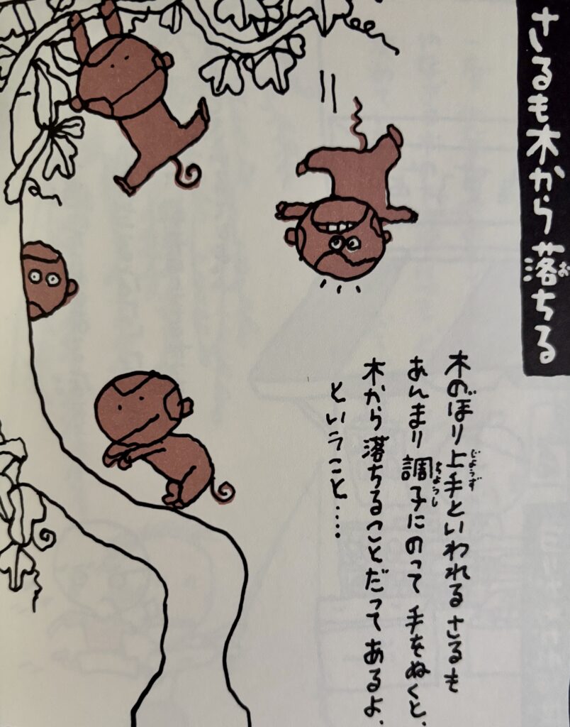 Saru mo ki kara ochiru — even monkeys fall from trees — is my favorite Japanese proverb. I first learned it many years ago while attending Japanese language school, where I (unwillingly) spent my Saturday mornings with other Nisei (second-generation Japanese American) kids. It is the only proverb that stuck with me, and has since served me well during life’s ups and downs.
